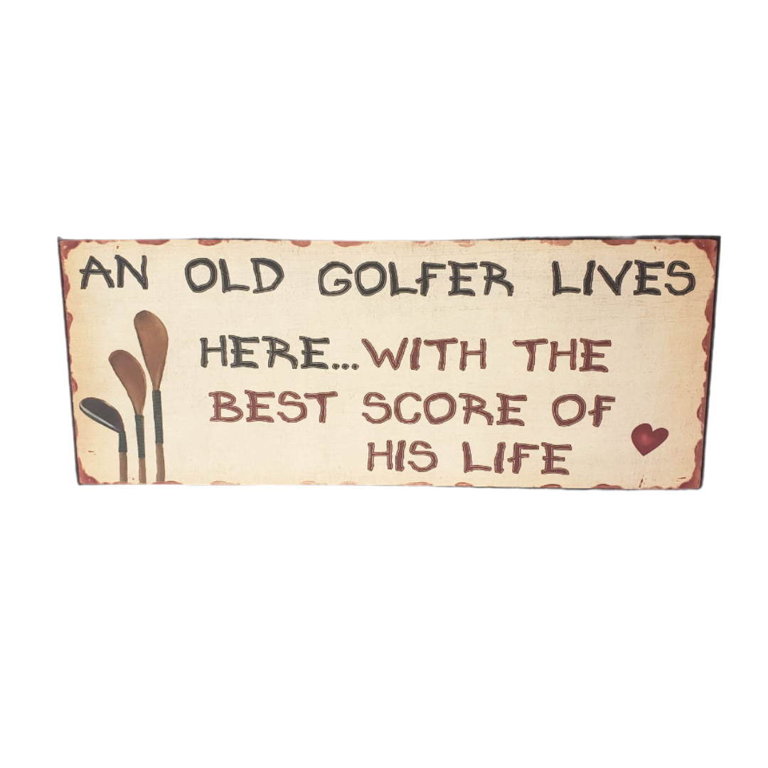 Introducing our "An Old Golfer Lives Here" Sign – a humorous and charming tribute to a lifetime of golfing experiences. Crafted with a playful touch, this sign features a vintage aesthetic, complete with weathered textures and classic typography, adding a touch of nostalgia to your decor.