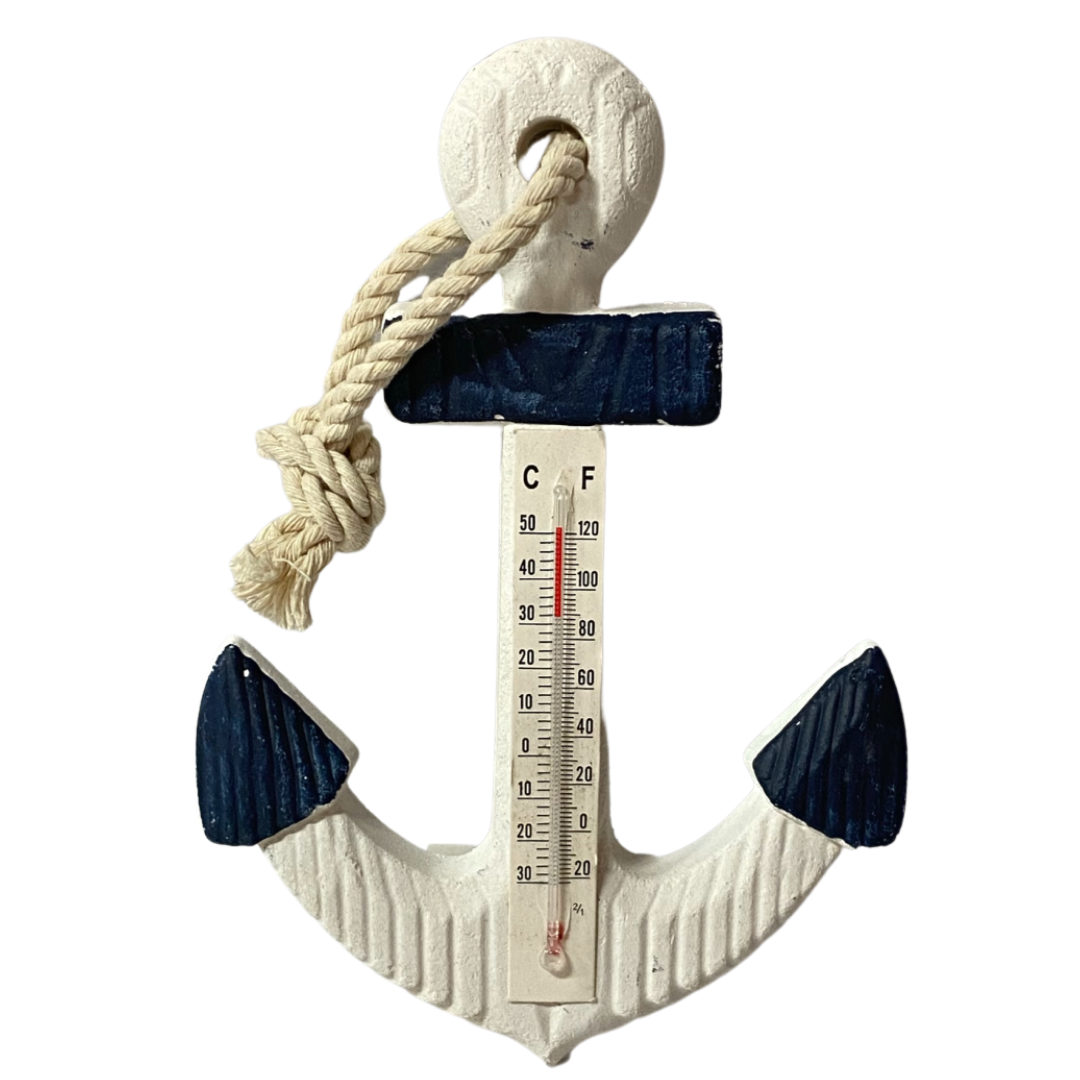 Introducing our Anchor Thermometer – a functional and decorative piece that combines the classic appeal of maritime design with the practicality of temperature monitoring. Crafted with care, this thermometer features a charming anchor motif, adding a touch of nautical flair to your indoor or outdoor space.