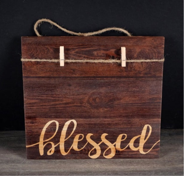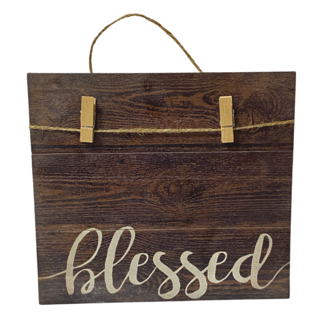 Discover our "Blessed" Wooden Wall Plaque with Clothes Pins, a delightful and functional addition to your home decor. This wooden plaque features the word "Blessed" along with attached clothespins, creating a unique and versatile way to display photos, notes, or small mementos. Hang it on your wall to combine sentiments of gratitude with a practical organization solution, allowing you to showcase cherished memories and reminders of blessings in your life.