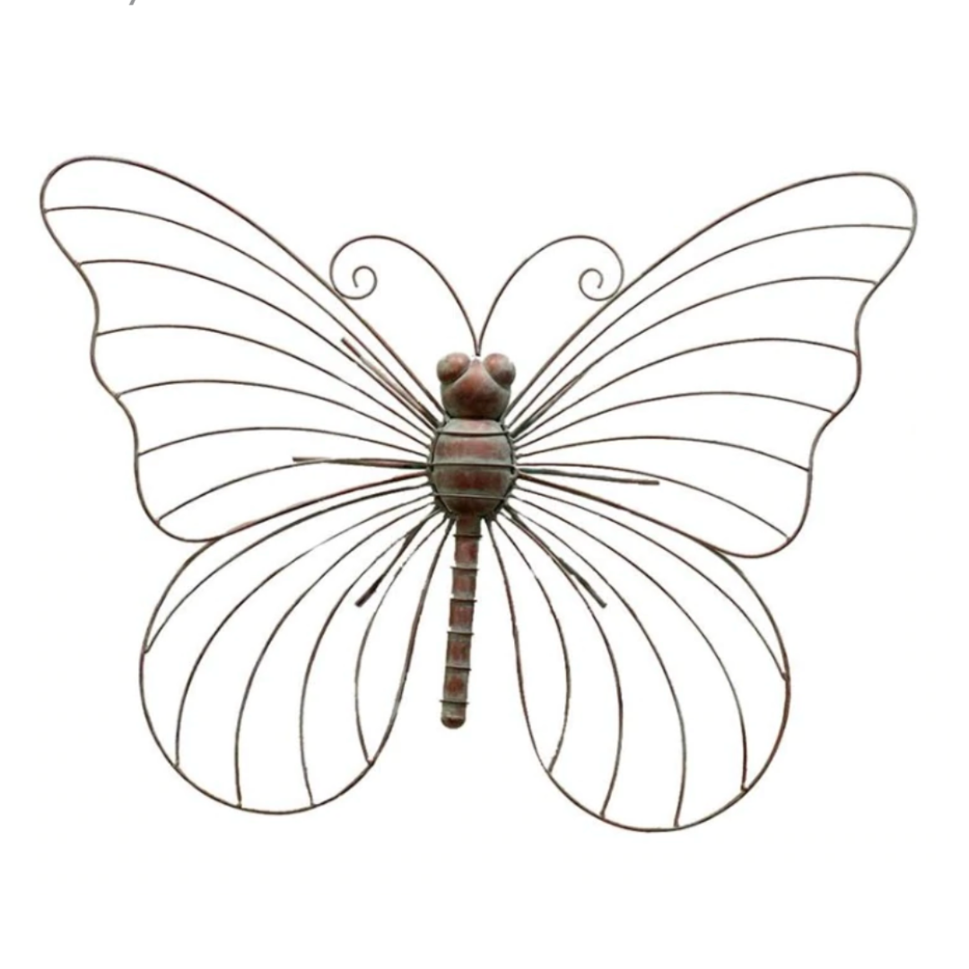 We love watching them flutter around the garden, so why not hang them up to have forever. This Butterfly Wall Art is accented with wired wings and is a great addition for a front porch, sunroom, garden shed or any other outdoor space.
