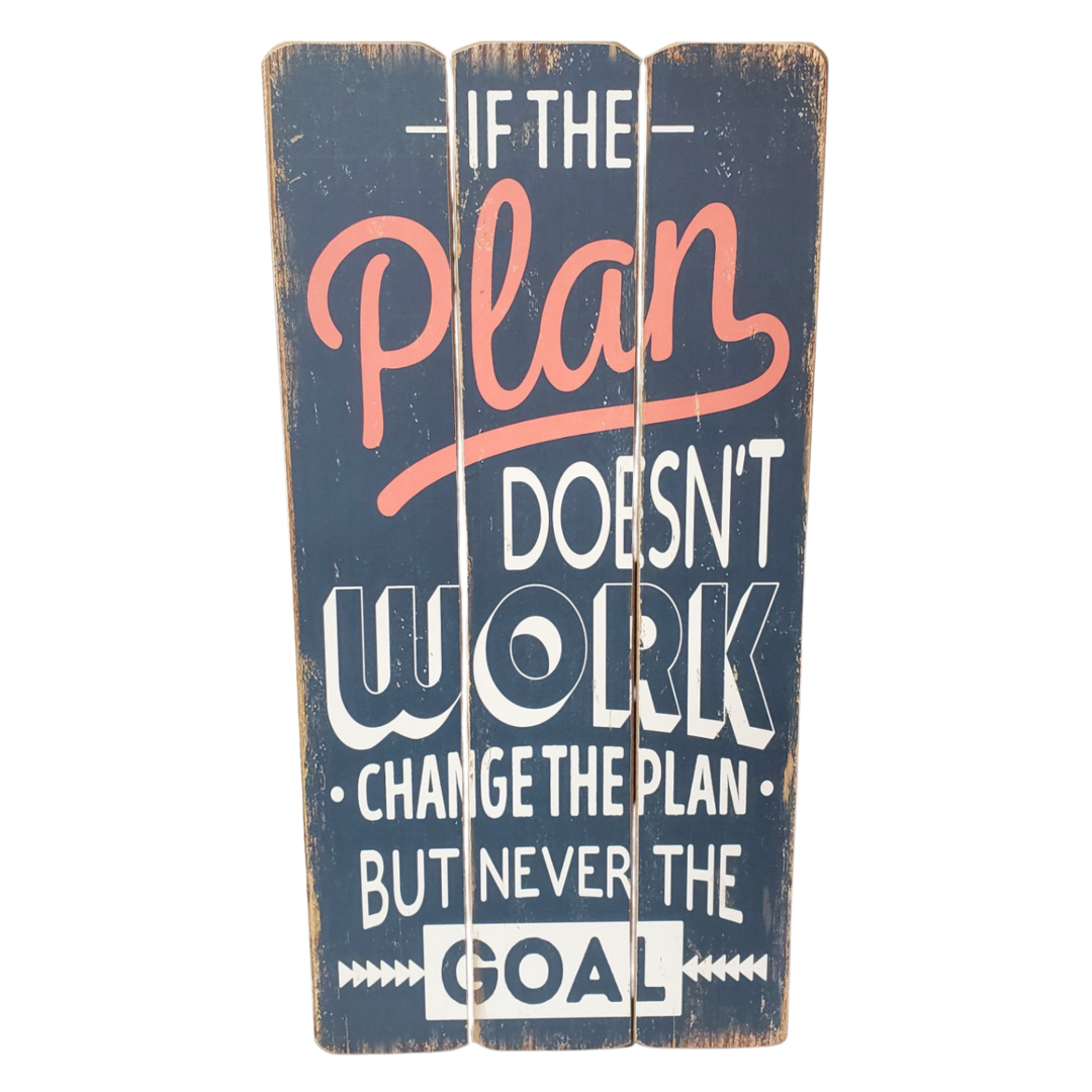 Introducing our "Change Plan Not Goal" Vintage Slat Sign – a timeless and motivational piece that encapsulates the essence of effective progress. Crafted with vintage charm, this sign serves as a gentle reminder that flexibility in your approach can lead to success. The weathered design and rustic appeal add character to any room, making it a perfect addition to your home or office decor. Let this vintage sign inspire you to embrace adaptability on your journey towards achieving your aspirations.
