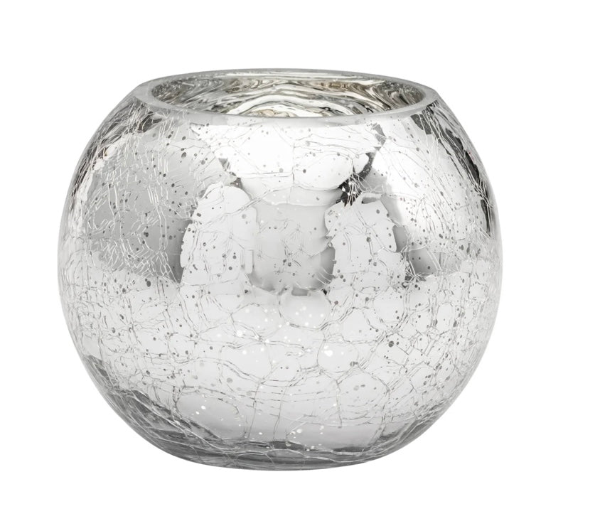 Add a look of elegance with this glass ball vase. The crackle mirror finish gives it a vintage lux appeal, while the round shape makes it perfect for a small bouquet. Whether filled with fresh florals or used as a tealight holder, this piece will look gorgeous in any setting. Flowers not included.