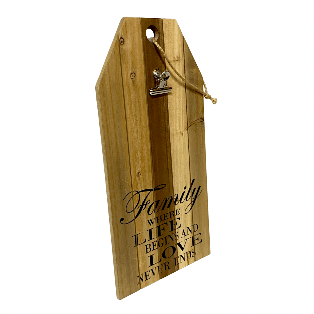 Presenting our Family Wooden Photo Clip Board – a captivating way to showcase your most treasured memories. Crafted with care from high-quality wood, this photo clip board features a rustic yet modern design, perfect for any interior decor. With a sturdy metal clip, it securely holds your cherished photos, allowing you to easily rotate and update them whenever you desire.