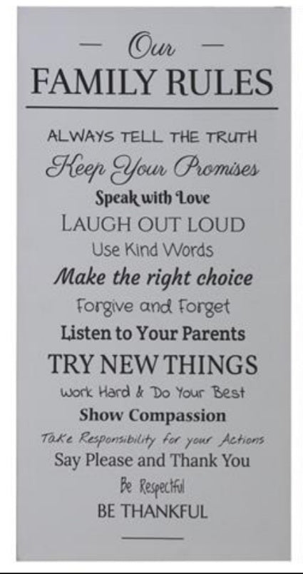 Introducing our Family Rules Canvas Wall Art in Grey, the perfect addition to your home decor that beautifully captures the essence of family values. This elegant and modern piece features a stylish grey background with meticulously crafted typography, showcasing a set of cherished family rules that inspire love, togetherness, and respect. Crafted with high-quality canvas and eco-friendly ink, this wall art is not only visually appealing but also durable and environmentally conscious. Whether placed in your living room, dining area, or hallway, this piece serves as a constant reminder of the principles that bind your family together. Elevate your space with a touch of warmth and sentimentality – the Family Rules Canvas Wall Art in Grey is a timeless expression of the love that defines your home.