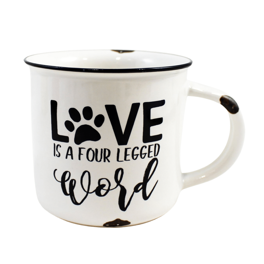 With its elegant design and thoughtful message, the "Love is a Four Legged Word" Ceramic Mug is the perfect companion for your morning coffee, afternoon tea, or any beverage that brings comfort and joy. Its durable construction and comfortable handle ensure a delightful drinking experience.