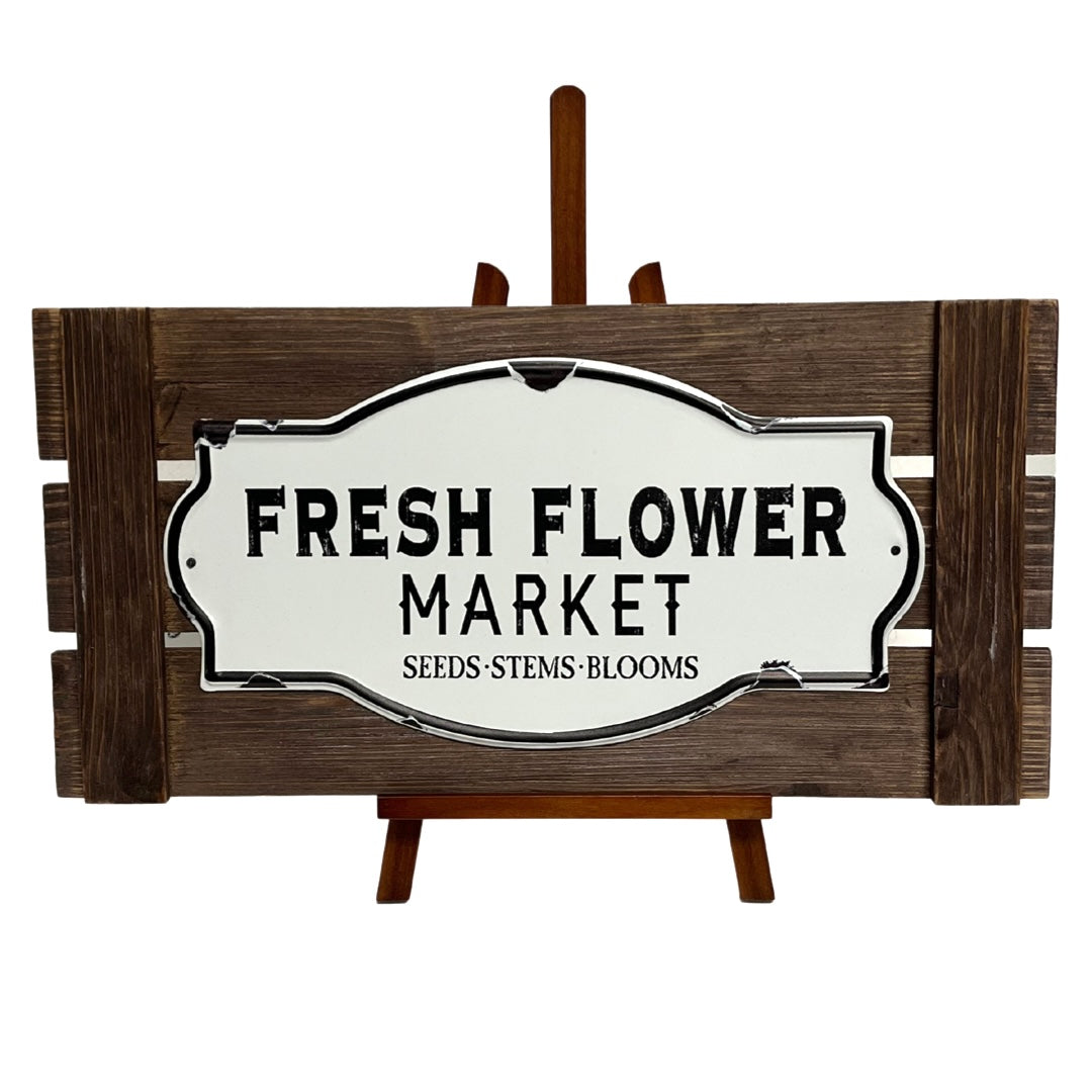 The weathered finish of the wooden sign adds character and warmth to any room, making it a perfect addition to your kitchen, entryway, or any space in need of a touch of floral elegance. The inviting message evokes the atmosphere of a quaint flower market, inviting you to appreciate the beauty of nature's blooms.