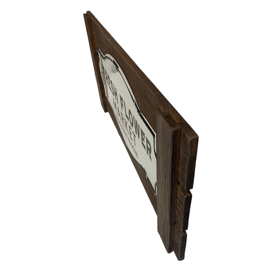 Display the Fresh Flower Market Wooden Sign to infuse your interior decor with the joys of springtime all year round. Whether as a decorative accent or a thoughtful gift for a fellow flower lover, this sign embodies the allure of freshly picked flowers and adds a touch of timeless appeal to your surroundings.