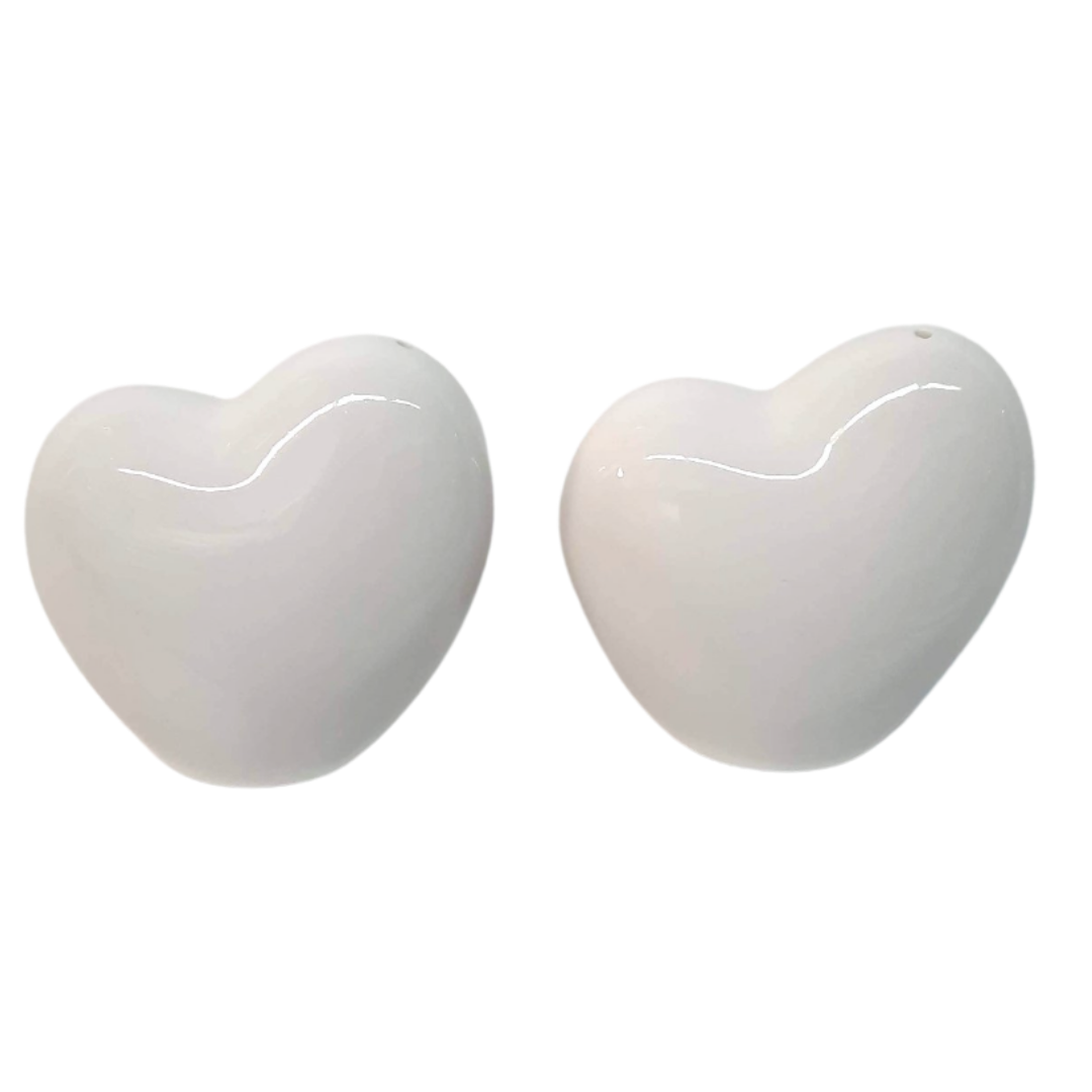 Enhance your dining experience with our White Ceramic Heart Salt & Pepper Shaker Set, a charming addition to your table that combines style and functionality.