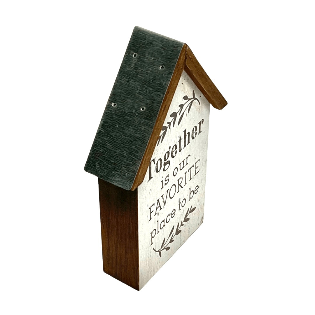 Each of these delightful house-shaped decor pieces carries a unique message that celebrates the essence of home: