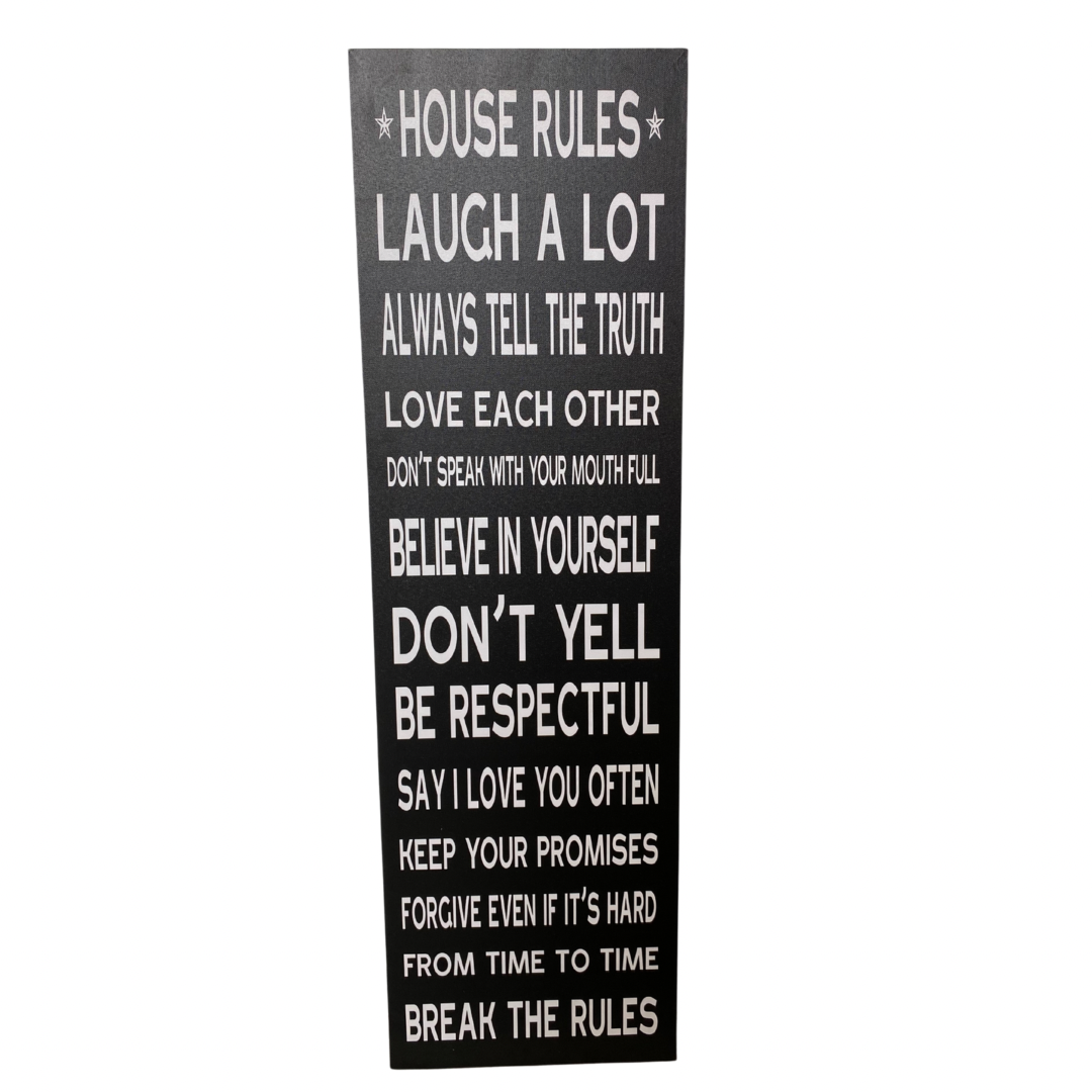 - Elegant Black Canvas: The deep black canvas provides a striking backdrop for your house rules, creating a timeless and sophisticated look.