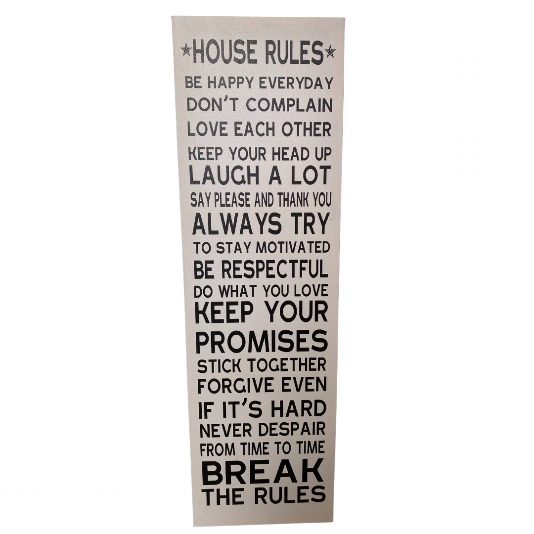 Elevate your home decor and showcase your family's values with our House Rules Canvas in White. It's not just art; it's an expression of what makes your home uniquely yours. Secure your canvas today and elevate your living space with enduring elegance.