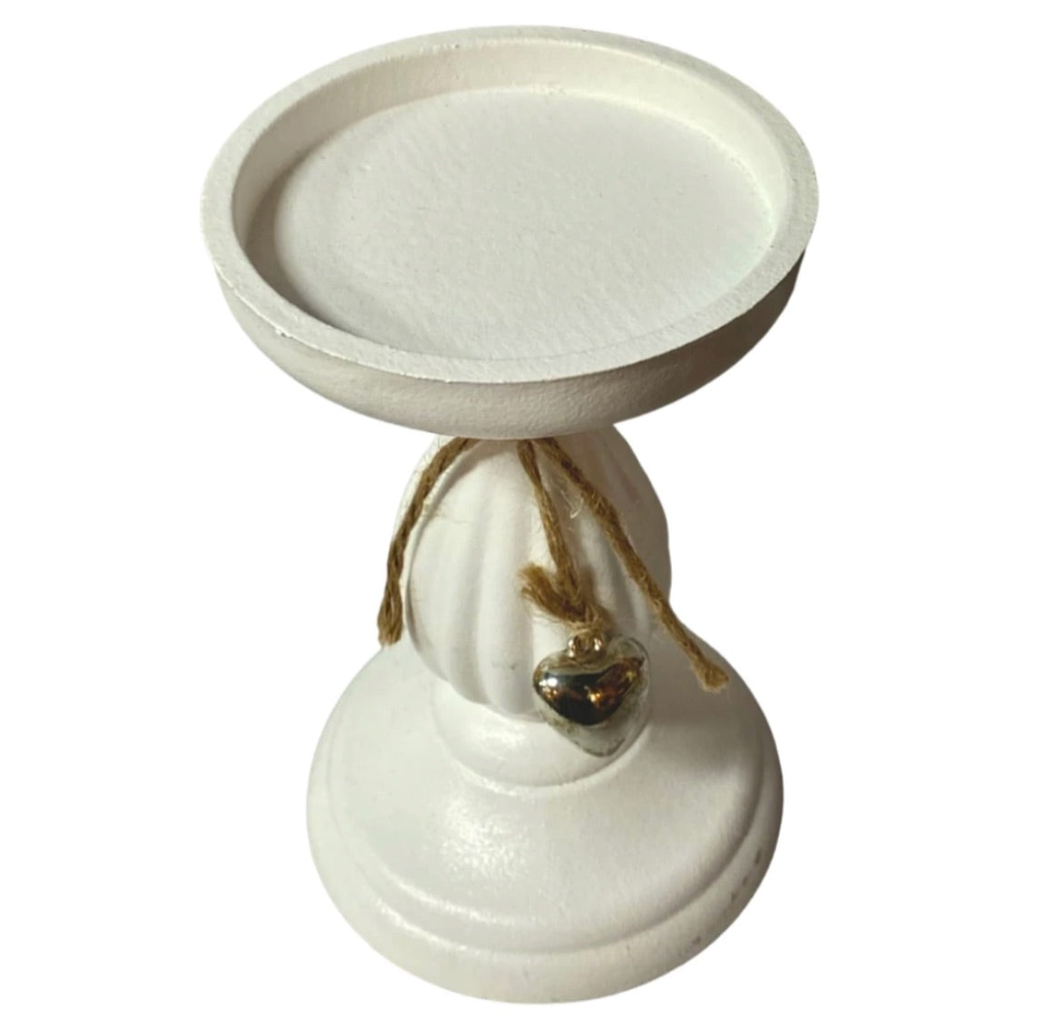 Introducing our exquisite White Candle Holders with Hanging Silver Heart – available in two sizes, small and large, these elegant stands add a touch of charm and sophistication to your home decor.