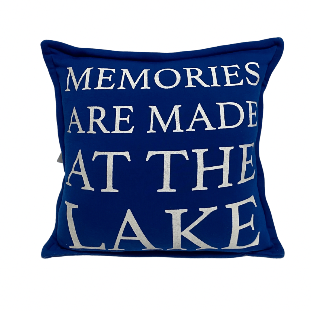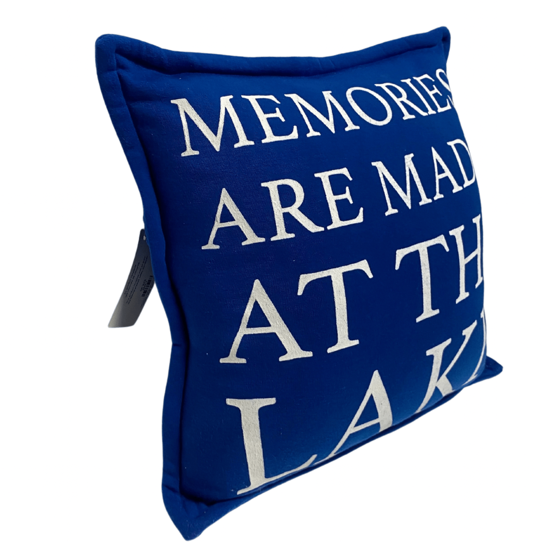 Create a cozy and nostalgic atmosphere with our "Memories Are Made At The Lake" Blue Pillow with crisp white text! 🏞️💙