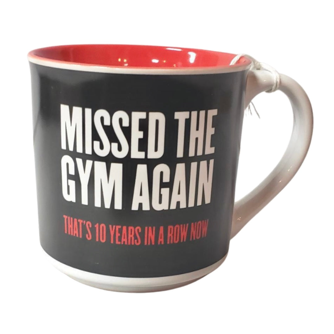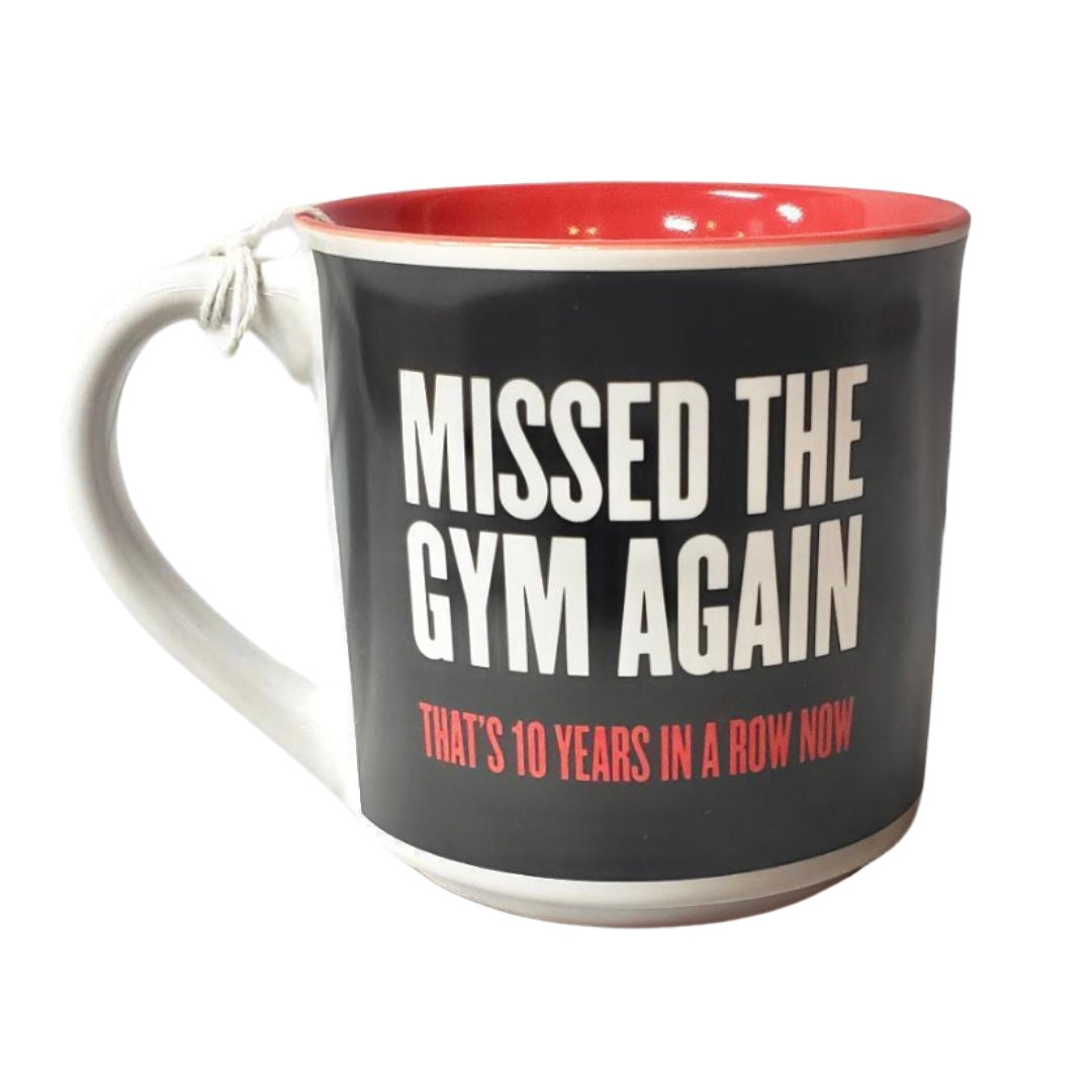 📆 With the bold statement "Missed the Gym Again, That's 10 Years in a Row Now" printed on it, it's sure to get a laugh from friends and coworkers.