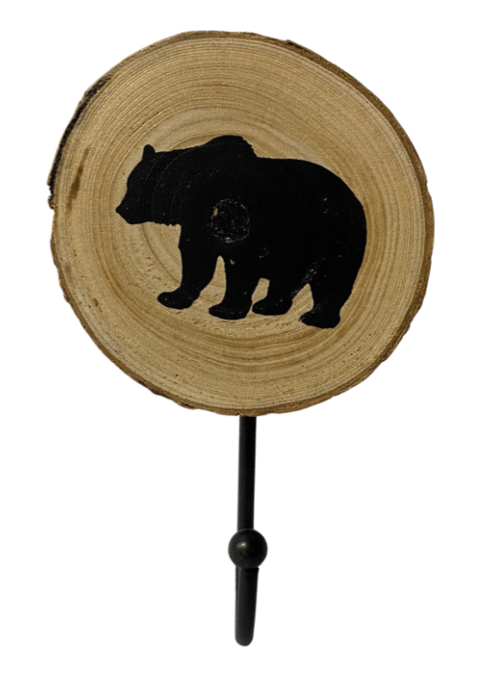Crafted from a solid round piece of natural wood, this charming hook features a beautifully detailed black bear silhouette and a sturdy black hook. It's not just a practical accessory for hanging coats, hats, or keys, but also a rustic work of art that adds a touch of wilderness to your decor.