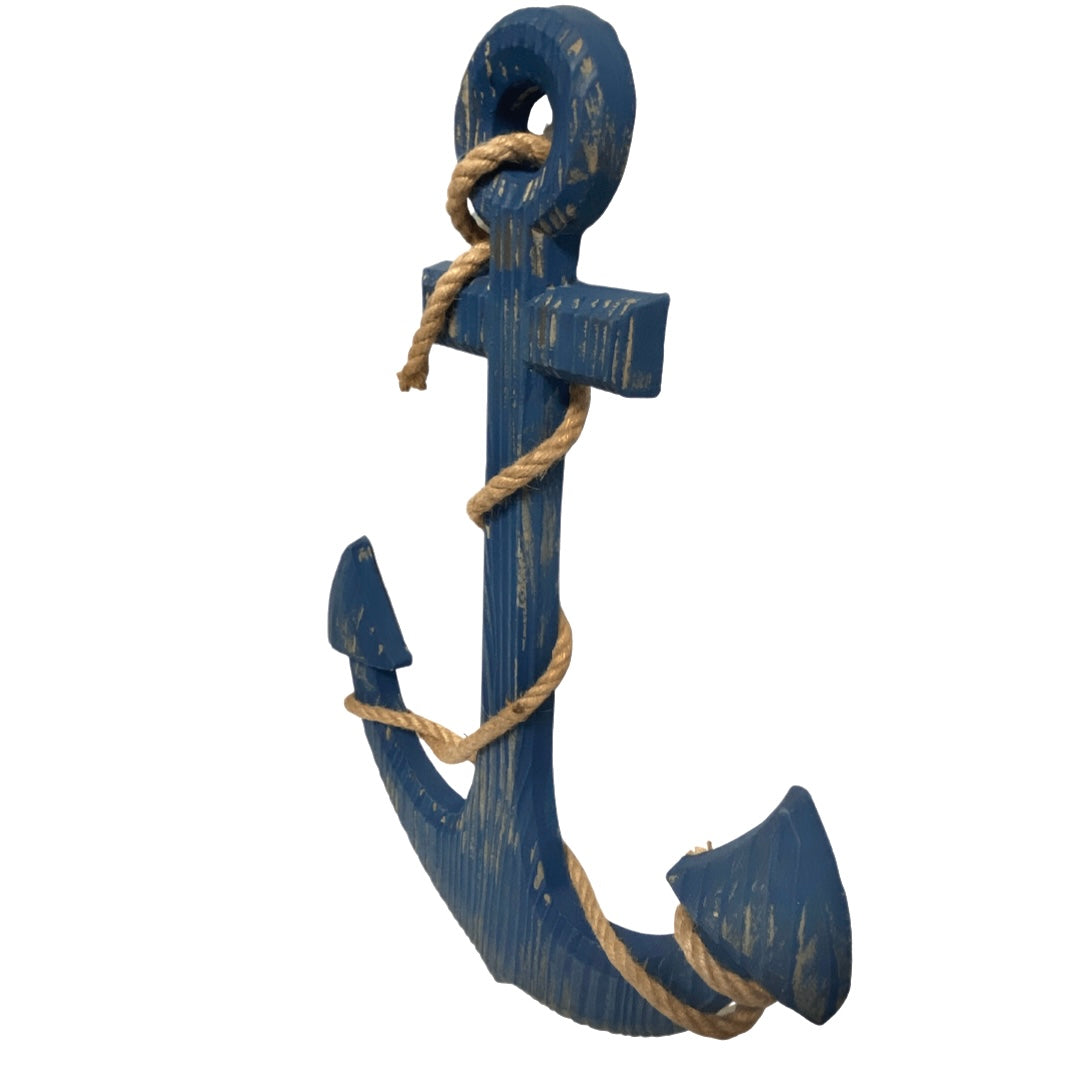 Navy Blue Wooden Anchor With Rope