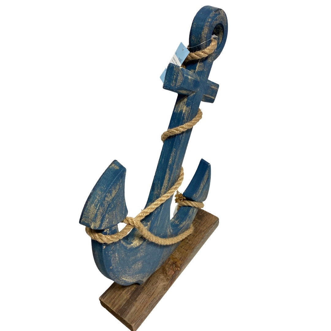 Enhance your coastal decor with this exquisite wooden harbor anchor, elegantly finished in navy blue and mounted on a sturdy base. The rich color and intricate details make it a standout piece, perfect for adding a touch of maritime charm to your living space.