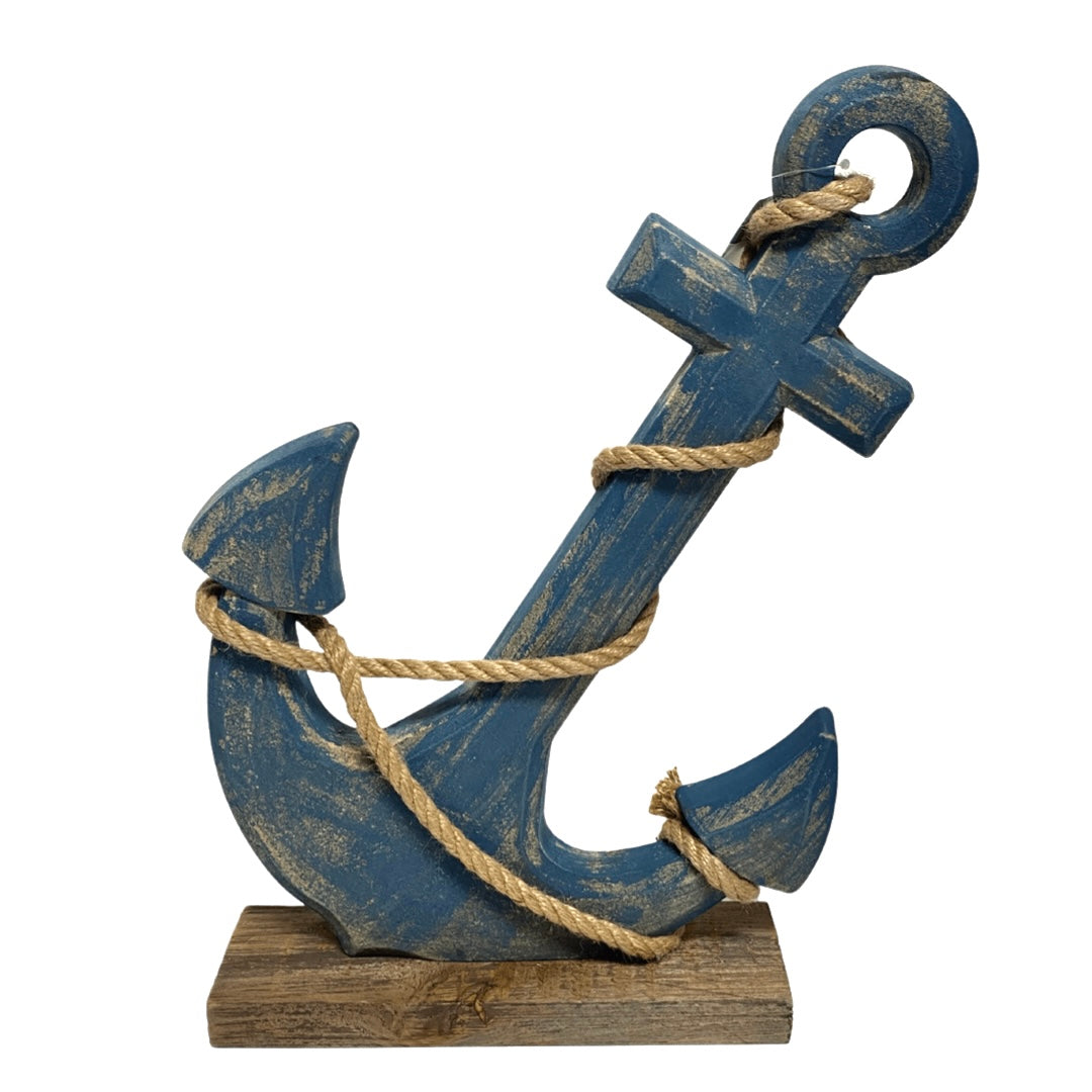 Navy Blue Wooden Harbour Anchor on Base