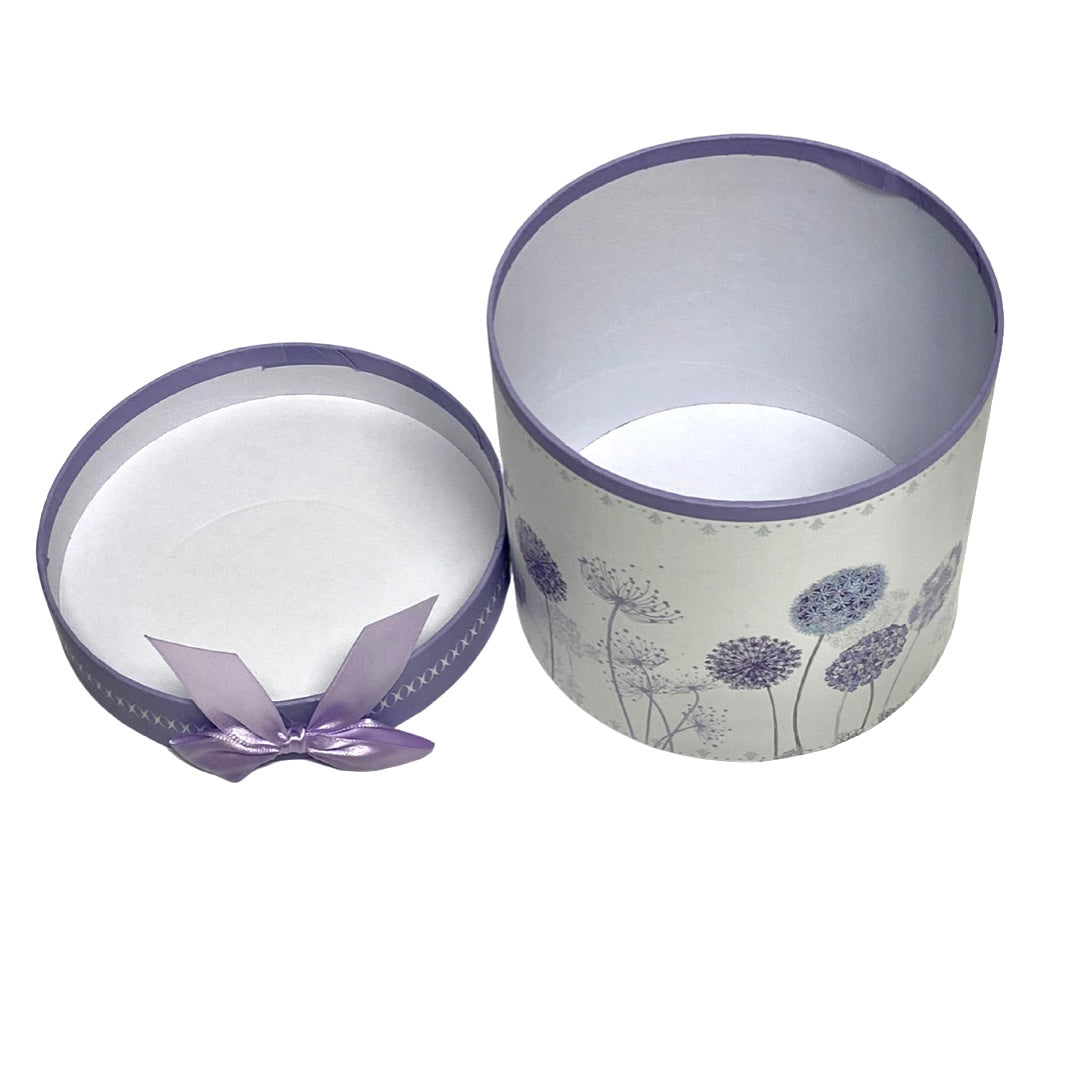 Dimensions of gift box: 4 1/4” depth & 5” diameter