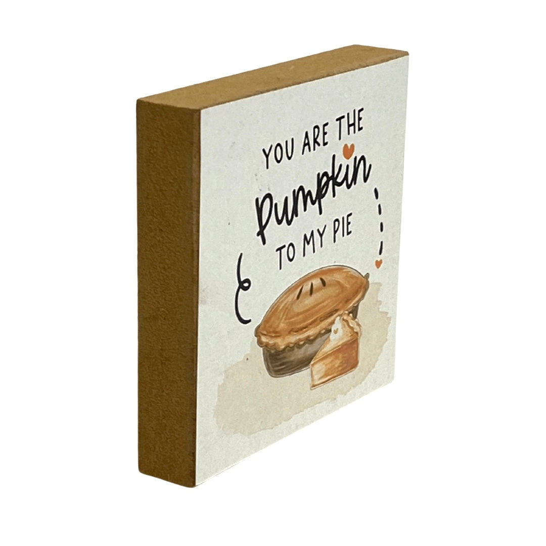 This charming wooden block sign is not just decor; it's a heartfelt sentiment that reads, "You are the pumpkin to my pie." 🧡🥧 Adorned with a delightful illustration of a whole pumpkin pie alongside a tempting slice, it beautifully captures the essence of togetherness during the fall season.