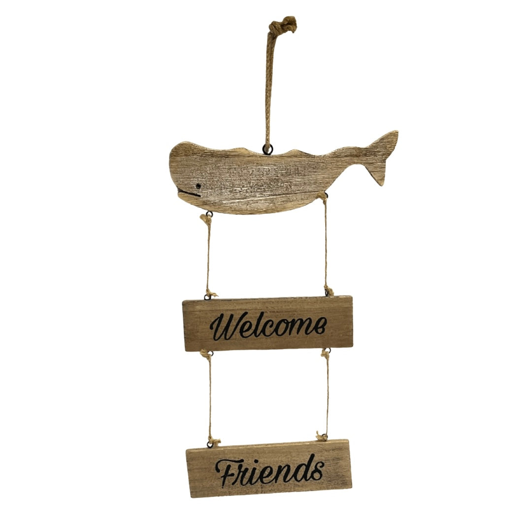 "**Welcome Friends Wooden Hanging Wall Plaque With Whale**" ๐๐