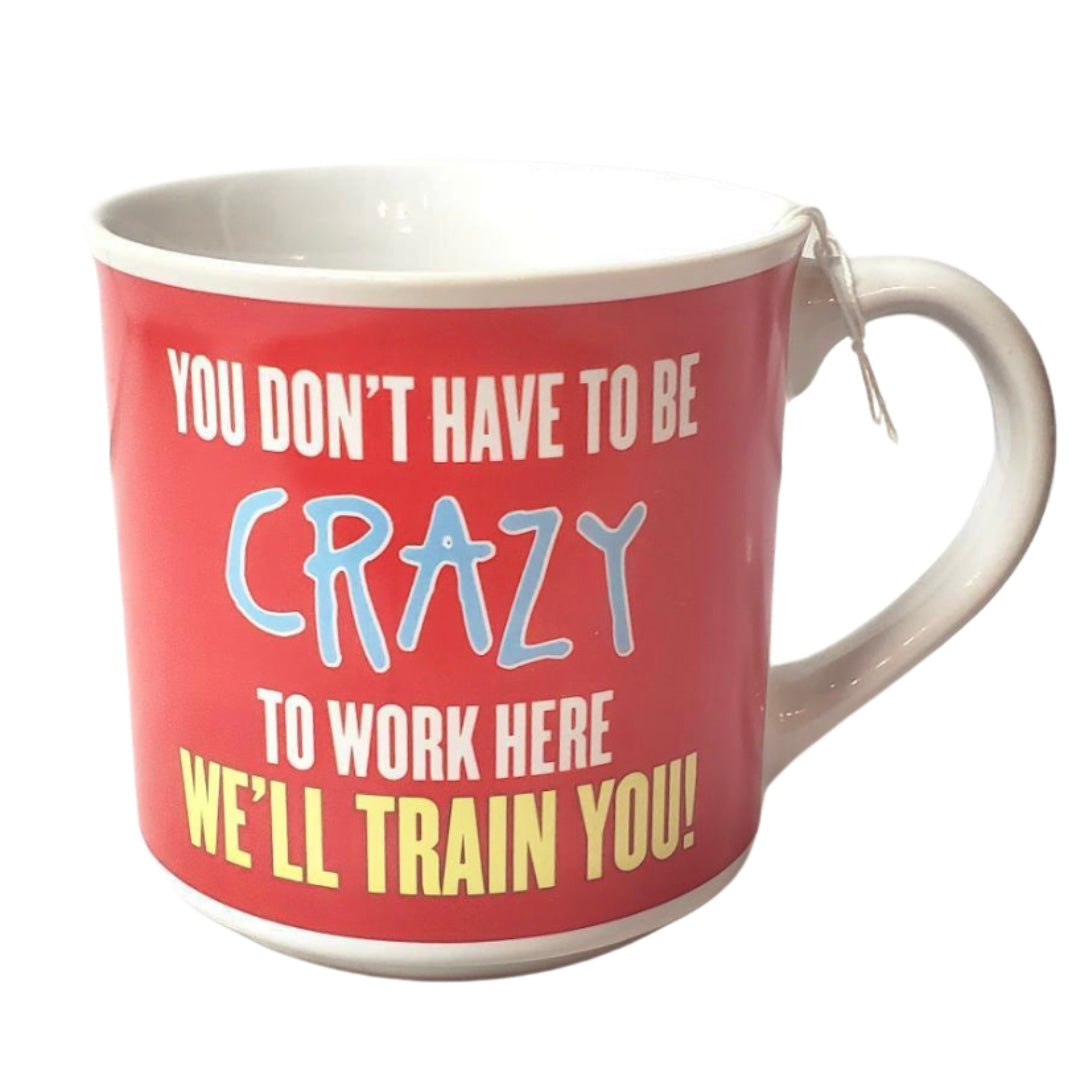 This mug is a fun and lighthearted way to add some humor to your workplace or coffee break. The message, "You don't have to be crazy to work here, we'll train you," is a playful reminder that a little quirkiness and a good sense of humor can make any job enjoyable.
