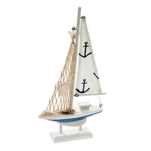 Display your love for sailing and collecting everything that sets your soul free with this wooden sailboat with anchor print, crafted out of wood to take the center spot on the mantle or tabletop. This wooden sailboat model is a perfect gift idea for any sailing enthusiast. This miniature home decor can be complemented with seashells, sand bottles, and small fish souvenirs.